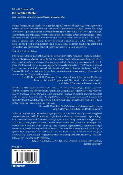 Written for students and early career psychologists, The Portable Mentor is a professional development handbook with practical guidelines and suggestions for mastering virtually every professional task encountered during the first decade of a career in psychology. Comprehensive in scope, but practical in use, The Portable Mentor offers the best possible training from the most successful leaders in psychology, combining the wisdom and mentorship of noted psychology experts into a single source. Here is some praise for the first edition: "What a great idea for a book! Edited by two former chairs of the American Psychological Association of Graduate Students (APAGS), this book covers, in a comprehensive fashion, everything about graduate school and career planning a psychologist in training usually learns by word-of-mouth! It's about time someone compiled this crucial information. Whether one is headed for a research or a clinical career, all of the practical steps to get there are included. And, "The Portable Mentor" is an apt description. Every graduate student and young professional will want to have this book readily available." - David H. Barlow, Ph.D., Professor of Psychology, Research Professor of Psychiatry, Director of Clinical Programs, and Director of the Center for Anxiety and Related Disorders at Boston University