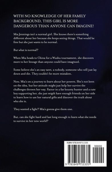 With no knowledge of her family background, this girl is more dangerous than anyone can imagine! Mia Jennings isn't a normal girl. She knows there's something different about her because she keeps seeing things. That would be fine but she just wants to be normal. But what is normal? When Mia heads to China for a Wushu tournament, she discovers more to her lineage than anyone could have imagined. Some believe she's an easy taret, a nobody, someone who will just lay down and die. They couldn't be more mistaken. Now, Mia's on a journey to learn about her powers. She's not keen on the idea, but her attitude might just help her survive the challenges thrown her way. Factor in a fae bounty hunter and a cute boy supporting her, she just migth have enough friends on her side to learn how to use her natural gifts and discover the truth about who she is. They wanted a fight? Mia's gonna give them one. But, can she fight hard and last long enough to learn what she needs to survive in her new world? Scroll up and click Read Now or Read for Free to discover why Mia's the Unwanted Princess today! **Previously released as part of the Chronicles of the Fae Princess Trilogy