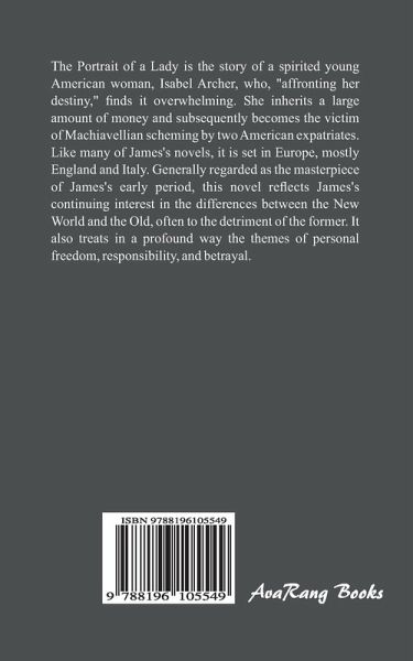 The Portrait of a Lady is the story of a spirited young American woman, Isabel Archer, who, "affronting her destiny," finds it overwhelming. She inherits a large amount of money and subsequently becomes the victim of Machiavellian scheming by two American expatriates. Like many of James's novels, it is set in Europe, mostly England and Italy. Generally regarded as the masterpiece of James's early period, this novel reflects James's continuing interest in the differences between the New World and the Old, often to the detriment of the former. It also treats in a profound way the themes of personal freedom, responsibility, and betrayal.…mehr