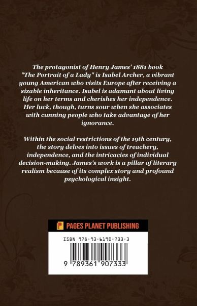 The protagonist of Henry James' 1881 book "The Portrait of a Lady" is Isabel Archer, a vibrant young American who visits Europe after receiving a sizable inheritance. Isabel is adamant about living life on her terms and cherishes her independence. Her luck, though, turns sour when she associates with cunning people who take advantage of her ignorance. Within the social restrictions of the 19th century, the story delves into issues of treachery, independence, and the intricacies of individual decision-making. James's work is a pillar of literary realism because of its complex story and profound psychological insight.