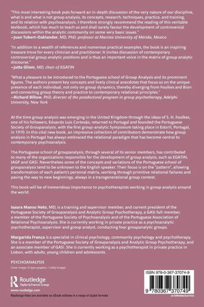 "What a pleasure to be introduced to the Portuguese school of Group Analysis and its prominent figures. The authors present key concepts and lively clinical anecdotes that focus us on the unique presence of each individual, not only on group dynamics, thereby diverging from Foulkes and Bion and connecting group theory and practice to contemporary relational principles."