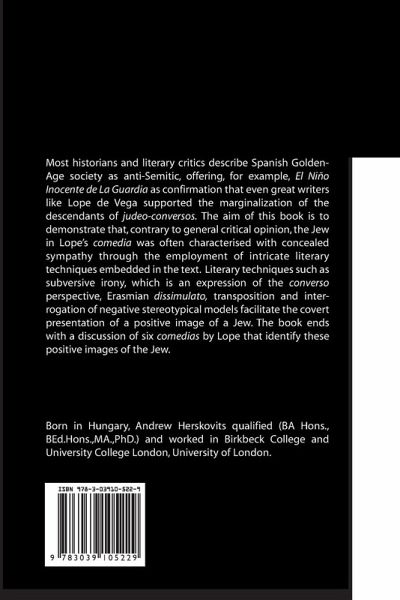Most historians and literary critics describe Spanish Golden-Age society as anti-Semitic, offering, for example, El Niño Inocente de La Guardia as confirmation that even great writers like Lope de Vega supported the marginalization of the descendants of judeo-conversos . The aim of this book is to demonstrate that, contrary to general critical opinion, the Jew in Lope's comedia was often characterised with concealed sympathy through the employment of intricate literary techniques embedded in the text. Literary techniques such as subversive irony, which is an expression of the converso perspective, Erasmian dissimulato, transposition and interrogation of negative stereotypical models facilitate the covert presentation of a positive image of a Jew. The book ends with a discussion of six comedias by Lope that identify these positive images of the Jew.