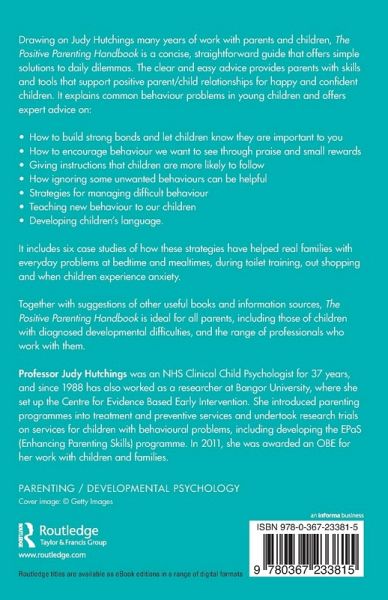 Drawing on Judy Hutchings many years of work with parents and children, The Positive Parenting Handbook is a concise, straightforward guide that offers simple solutions to daily dilemmas. The clear and easy advice provides parents with skills and tools that support positive parent/child relationships for happy and confident children. It explains common behaviour problems in young children and offers expert advice on: -How to build strong bonds and let children know they are important to you -How to encourage behaviour we want to see through praise and small rewards -Giving instructions that children are more likely to follow -How ignoring some unwanted behaviours can be helpful -Strategies for managing difficult behaviour -Teaching new behaviour to our children -Developing children's language. It includes six case studies of how these strategies have helped real families with everyday problems at bedtime and mealtimes, during toilet training, out shopping and when children experience anxiety. Together with suggestions of other useful books and information sources, The Positive Parenting Handbook is ideal for all parents, including those of children with diagnosed developmental difficulties, and the range of professionals who work with them.