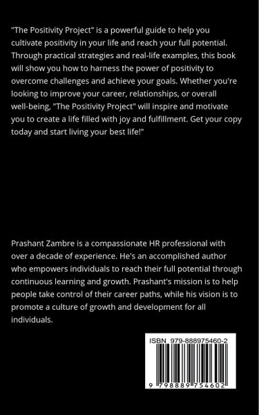 "The Positivity Project" is a powerful guide to help you cultivate positivity in your life and reach your full potential. Through practical strategies and real-life examples, this book will show you how to harness the power of positivity to overcome challenges and achieve your goals. Whether you're looking to improve your career, relationships, or overall well-being, "The Positivity Project" will inspire and motivate you to create a life filled with joy and fulfillment. Get your copy today and start living your best life!