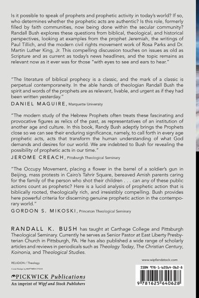Is it possible to speak of prophets and prophetic activity in today's world? If so, who determines whether the prophetic acts are authentic? Is this role, formerly filled by faith communities, now being done within the secular community? Randall Bush explores these questions from biblical, theological, and historical perspectives, looking at examples from the prophet Jeremiah, the writings of Paul Tillich, and the modern civil rights movement work of Rosa Parks and Dr. Martin Luther King, Jr. This compelling discussion touches on issues as old as scripture and as current as today's news headlines, and the topic remains as relevant now as it ever was for those "with eyes to see and ears to hear."