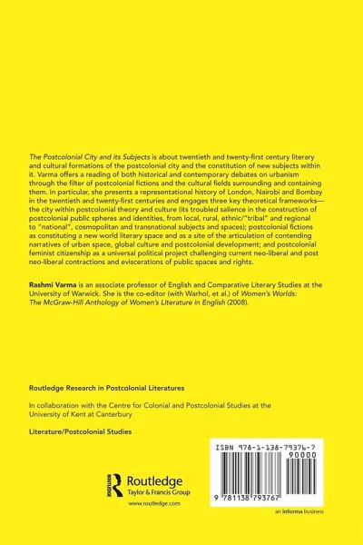 This book considers twentieth and twenty-first century literary and cultural formations of the postcolonial city and the constitution of new subjects within it. Varma offers a reading of both historical and contemporary debates on urbanism through the filter of postcolonial fictions and the cultural fields surrounding and containing them. In particular, she presents a representational history of London, Nairobi and Bombay in the twentieth and twenty-first centuries and engages three key theoretical frameworks-the city within postcolonial theory and culture (its troubled salience in the construction of postcolonial public spheres and identities, from local, rural, ethnic/"tribal", and regional to "national", cosmopolitan and transnational subjects and spaces); postcolonial fictions as constituting a new world literary space and as a site of the articulation of contending narratives of urban space, global culture and postcolonial development; and postcolonial feminist citizenship as a universal political project challenging current neo-liberal and post neo-liberal contractions and eviscerations of public spaces and rights.