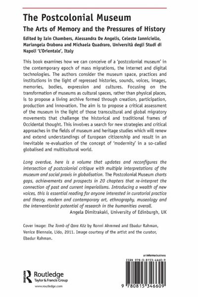 Acknowledgements, Alessandra De Angelis, Celeste Ianniciello, Mariangela Orabona, Michaela Quadraro; Part I Global Migrations, Transcultural Heritage; Chapter 1 A Museum Without Objects, Françoise Vergès; Chapter 2 Decolonising National Museums of Ethnography in Europe: Exposing and Reshaping Colonial Heritage (2000-2012), Felicity Bodenstein, Camilla Pagani; Chapter 3 Colonial Spaces, Postcolonial Narratives: The Exhibitionary Landscape of Fort Cochin in India, Neelima Jeychandran; Chapter 4 Ethnographic Museums: From Colonial Exposition to Intercultural Dialogue, Fabienne Boursiquot; Part II Artistic Incursions in Space and Time; Chapter 5 'There is Not Yet a World', Ebadur Rahman; Chapter 6 The Artist as Interlocutor and the Labour of Memory, Mihaela Brebenel, Christopher Collier, Joanna Figiel; Chapter 7 Performance in the Museum Space (for a Wandering Society), Margherita Parati; Part III Disorienting the Museum; Chapter 8 Museo Diffuso: Performing Memory in Public Spaces, Viviana Gravano; Chapter 9 Mining the Museum in an Age of Migration, Anne Ring Petersen; Chapter 10 Blurring History: The Central European Museum and the Schizophrenia of Capital, Ivan Jurica; Chapter 11 The Limits to Institutional Change: Organisational Roles and Roots, Peggy Levitt; Part IV Representation and Beyond; Chapter 12 The Incurable Image: Curation and Repetition on a Tri-continental Scene, Tarek Elhaik; Chapter 13 The Postcolonial 'Exhibitionary Complex': The Role of the International Expo in Migrating and Multicultural Societies, Stefania Zuliani; Chapter 14 Orientalism and the Politics of Contemporary Art Exhibitions, Alessandra Marino; Chapter 15 What Museum for Africa?, Itala Vivan; Part V Future Memories, Alternative Archives; Chapter 16 Egyptian Chemistry: From Postcolonial to Post-humanist Matters, Ursula Biemann; Chapter 17 'The Lived Moment': New Aesthetics for Migrant Recollection, Peter Leese; Chapter 18 Coding/Decoding the Archive, David Gauthier, Erin La Cour; afterword Afterword: After the Museum, Iain Chambers;