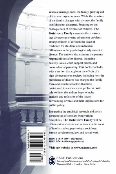 This book analyzes the issues surrounding divorce and its implications for public policy. The authors integrate research and policy perspectives of scholars in various disciplines to focus on the consequences of divorce for children, the parents' responsiblities after divorce, nonresidential parenting, and the effects of a high divorce rate in society.