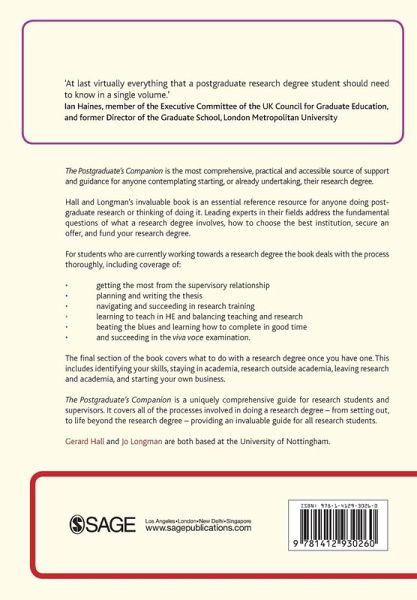 'At last virtually everything that a postgraduate research degree student should need to know in a single volume.' Ian Haines, member of the Executive Committee of the UK Council for Graduate Education, and former Director of the Graduate School, London Metropolitan University The Postgraduate's Companion is the most comprehensive, practical and accessible source of support and guidance for anyone contemplating starting, or already undertaking, their research degree. Hall and Longman's invaluable book is an essential reference resource for anyone doing postgraduate research or thinking of doing it. Leading experts in their fields address the fundamental questions of what a research degree involves; how to choose the best institution; secure an offer; and fund your research degree. For students who are currently working towards a research degree the book deals with the process thoroughly, including coverage of: - getting the most from the supervisory relationship; - planning and writing the thesis; - navigating and succeeding in research training; - learning to teach in HE and balancing teaching and research; - beating the blues and learning how to complete in good time; - and succeeding in the viva voce examination. The final section of the book covers what to do with a research degree once you have one. This includes identifying your skills; staying in academia; research outside academia; leaving research and academia; and starting your own business. The Postgraduate's Companion is a uniquely comprehensive guide for research students and supervisors. It covers all of the processes involved in doing a research degree - from setting out, to life beyond the research degree - providing an invaluable guide for all research students.