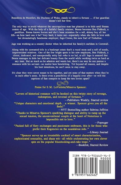 Duchess Benedicta de Montfort stands to inherit a fortune ... if her guardian doesn't kill her first. The only way to avoid whatever the unscrupulous man has planned is to hide until Benna comes of age. With the help of a faithful family retainer, Benna becomes Ben Piddock, a postilion seeking employment. Benna knows horses and she's been mistaken for a tall, skinny boy all her life-so how hard can it be? Very hard, it turns out-especially when she falls in love with her devastatingly handsome employer, Jago Venable, the new Earl of Trebolton. Jago was working as a country doctor when he inherited his family's earldom in Cornwall. Along with the unwanted title is a bankrupt estate that's a royal mess and a raft of needy, impoverished relatives. One of the few bright spots is his new employee, Ben Piddock, a clever, dedicated, and unexpectedly witty lad--who is no lad, at all! Jago is amazed that Benna manages to hide her delicate beauty from the world while working twice as hard as any man. But as much as he admires and wants her, there's no way he can pursue a romance with his servant-no matter how bewitching. Yet beyond all reason, and despite his best intentions, he can't seem to stay away. It's clear they were never meant to be together, and yet none of that matters when they're in each other's arms. Is there even a possibility of a happily ever after-or will the caprices of fate conspire to keep the two lovers apart? Full length novel @110k words, includes a preview of THE BASTARD. ¿TRIGGER WARNING: Violence, rape.