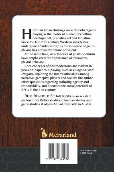 Historian Johan Huizinga once described game playing as the motor of humanity's cultural development, predating art and literature. Since the late 20th century, Western society has undergone a "ludification," as the influence of game-playing has grown ever more prevalent. At the same time, new theories of postmodernism have emphasized the importance of interactive, playful behavior. Core concepts of postmodernism are evident in pen-and-paper role-playing, such as Dungeons and Dragons. Exploring the interrelationships among narrative, gameplay, players and society, the author raises questions regarding authority, agency and responsibility, and discusses the social potential of RPGs in the 21st century.