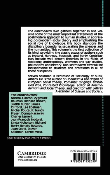 This book collects the most important statements of the postmodern theory, including the classics essays of authors such as Lyotard, Haraway, Foucault, and Rorty.