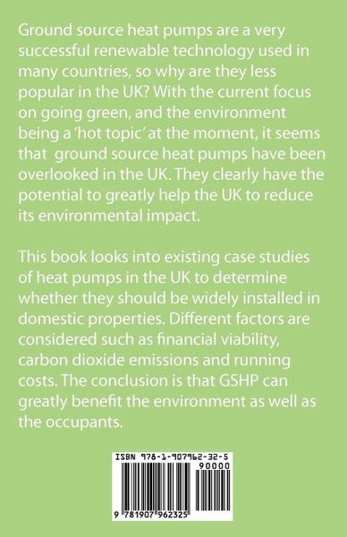 Ground source heat pumps are a very successful renewable technology used in many countries, so why are they less popular in the UK? With the current focus on going green, and the environment being a 'hot topic' at the moment, it seems that ground source heat pumps have been overlooked in the UK. They clearly have the potential to greatly help the UK to reduce its environmental impact. This book looks into existing case studies of heat pumps in the UK to determine whether they should be widely installed in domestic properties. Different factors are considered such as financial viability, carbon dioxide emissions and running costs. The conclusion is that GSHP can greatly benefit the environment as well as the occupants.