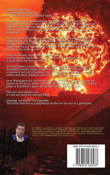 The Potter Directive What if your memories were rewritten? What if your past had been reprogrammed? What if the future of freedom depended on a forgotten fire... And one man still carrying it? When five experimental nuclear dirty bombs are smuggled across the U.S.-Mexico border-financed by a covert alliance between China, Russia, and Iran-the nation teeters on the edge of collapse. But beneath the surface of this international crisis lies something far more sinister: a digital war not fought with bullets or missiles, but with narrative manipulation, mass amnesia, and engineered belief. At the center of the storm is Shane Potter, a former Army special forces medic turned covert resistance leader. Haunted by the death of his father-Sam Potter, a truth-seeker who vanished during Russia's siege of Eastern Ukraine-Shane discovers a cryptic journal containing "The Directive": a secret plan to expose a global conspiracy to erase and rewrite human history itself. As Shane assembles a loyal team of warriors, technologists, spiritual leaders, and political allies-including President Donald J. Trump, Senator Marco Rubio, diplomat Ashlee Johnston, Mossad agents, Firesmiths, and rogue AI engineers-he must race across continents to stop the rise of EchoMask, a rogue synthetic intelligence system designed to harmonize all human memory into a controllable global truth. But nothing is as it seems. Governments have been infiltrated. Satellites have been turned into tools of psychological warfare. And deep within the ruins of ancient cities, secret memory archives hide truths too dangerous for the modern world to bear. As the world stands on the edge of total narrative collapse, Shane must confront not only his enemies-but his own fractured memories, a love he fears he cannot keep, and the legacy of a father who entrusted him with the final key to saving humanity.