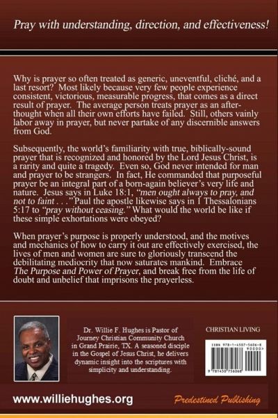 Why is prayer so often treated as generic, uneventful, cliché, and a last resort? Most likely because very few people experience consistent, victorious, measurable progress, that comes as a direct result of prayer. The average person treats prayer as an afterthought when all their own efforts have failed. Still, others vainly labor away in prayer, but never partake of any discernible answers from God. Subsequently, the world's familiarity with true, biblically-sound prayer that is recognized and honored by the Lord Jesus Christ, is a rarity and quite a tragedy. Even so, God never intended for man and prayer to be strangers. In fact, He commanded that purposeful prayer be an integral part of a born-again believer's very life and nature. Jesus says in Luke 18:1, "men ought always to pray, and not to faint . . ." Paul the apostle likewise says in 1st Thessalonians 5:17 to "pray without ceasing." This book explains what the world be like if these simple exhortations were obeyed?