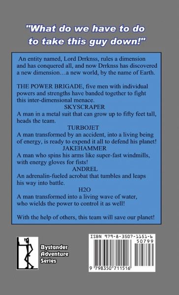 An entity named Lord Drrknss, rules a dimension and has conquered all, and now Drrknss has discovered a new dimension.... a new world, by the name of Earth. THE POWER BRIGADE, five men with individual powers and strengths have banded together to fight the inter-dimensional menace.
