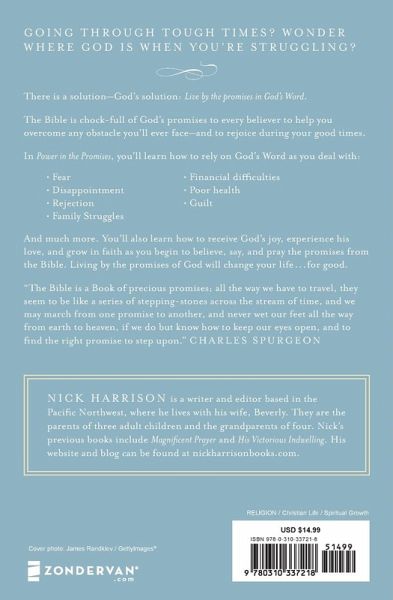 Going through tough times? Wonder where God is when you're struggling? There is a solution--God's solution: Live by the promises in God's Word. The Bible is chock-full of God's promises to every believer to help you overcome any obstacle you'll ever face--and to rejoice during your good times. In Power in the Promises, you'll learn how to rely on God's Word as you deal with: - Fear - Disappointment - Rejection - Family Struggles - Financial difficulties - Poor health - Guilt And much more. You'll also learn how to receive God's joy, experience His love, and grow in faith as you begin to believe, say, and pray the promises from the Bible. Living by the promises of God will change your life...for good.