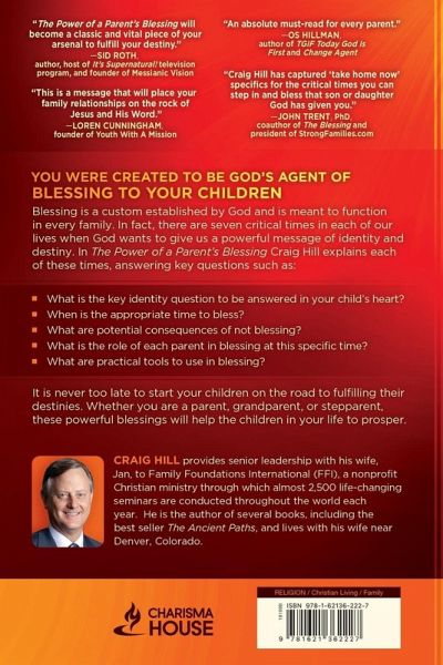 You were created to be God's agent of blessing to your children Blessing is a custom established by God and is meant to function in every family. In fact, there are seven critical times in each of our lives when God wants to give us a powerful message of identity and destiny. In The Power of a Parent's Blessing Craig Hill explains each of these times, answering key questions such as: - What is the key identity question to be answered in your child's heart? - When is the appropriate time to bless? - What are potential consequences of not blessing? - What is the role of each parent in blessing at this specific time? > It is never to late to start your children on the road to fulfilling their destinies. Whether you are a parent, grandparent, or step-parent, these powerful blessings will help the children in your life to prosper.