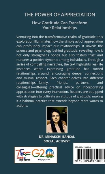 Venturing into the transformative realm of gratitude, this exploration illuminates how the simple act of appreciation can profoundly impact our relationships. It unveils the science and psychology behind gratitude, revealing how it not only strengthens bonds but also fosters trust and nurtures a positive dynamic among individuals. Through a series of compelling narratives, the text highlights real-life instances where expressing gratitude has turned relationships around, encouraging deeper connections and mutual respect. Each chapter delves into different relationships-family, friends, partners, and colleagues-offering practical advice on incorporating appreciation into every interaction. Readers are equipped with strategies to cultivate an attitude of gratitude, making it a habitual practice that extends beyond mere words to actions. The book asserts that gratitude is not just a response but a proactive approach to creating more meaningful and fulfilling relationships. By the end, "The Power of Appreciation" emerges as a guide to transforming one's life and connections with others through the simple, yet powerful, act of valuing and expressing appreciation.