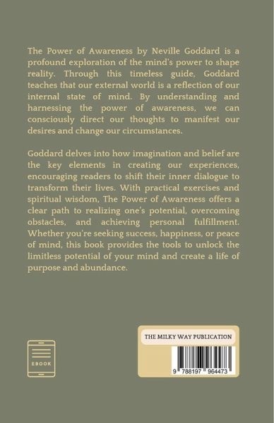 The Power of Awareness by Neville Goddard is a transformative guide to understanding and harnessing the profound influence of awareness and consciousness in shaping one's reality. In this seminal work, Goddard explores the idea that our external experiences are a direct reflection of our internal state of awareness and belief. Goddard introduces the concept that awareness is the foundation of all creation. He argues that by altering our state of consciousness and focusing on the awareness of our desired outcomes, we can directly influence and transform our external circumstances. The book emphasizes that our beliefs and mental states shape our reality, and by cultivating a higher state of awareness, we can manifest our desires and achieve personal goals.