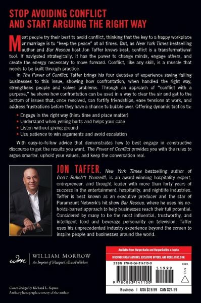 Enter the Toolkit for Getting Conflict Right. Taffer's approach is focused on deliberate conflict-otherwise known as "conflict with a purpose." There are selective and strategic ways to have difficult conversations, and when doing so, to stay aware of your objectives rather than escalating tension unnecessarily. As Taffer explains, "The key is to act affirmatively, constructively, and productively." Eliminating conflict isn't always the answer; inevitably there will be times when it will arise. Engaging in conflict can be a way to clear the air, and get to the bottom of issues that, once resolved, can strengthen friendships, ease tensions at work, and address problems before they have a chance to bubble over.