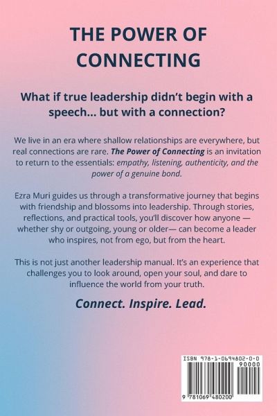 What if true leadership didn't begin with a speech... but with a connection? We live in an era where shallow relationships are everywhere, but real connections are rare. The Power of Connecting is an invitation to return to the essentials: empathy, listening, authenticity, and the power of a genuine bond. Ezra Muri guides us through a transformative journey that begins with friendship and blossoms into leadership. Through stories, reflections, and practical tools, you'll discover how anyone -whether shy or outgoing, young or older- can become a leader who inspires, not from ego, but from the…mehr