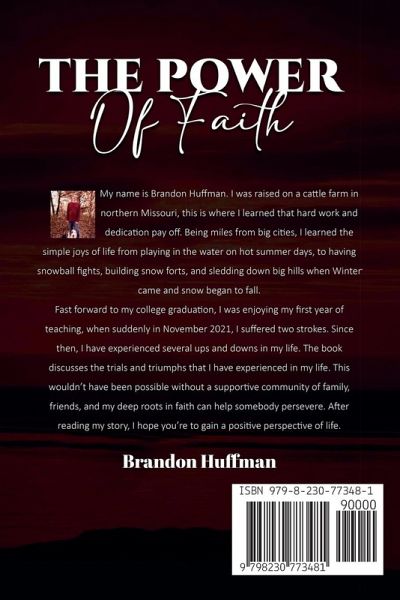 Have you ever been cruising through life and thought everything was well? Then, bam, something hits you out of nowhere. Well, that happened to me one day. This autobiography discusses what happened and how my faith got me through the dark times. Follow my journey from my stroke to where I am today. I wrote this book to give readers hope that a life-changing event doesn't have to be the end. Someone can recover and get back to everyday life. The main theme is where there's a will, there's a way. This book tells a story about how faith helped an ordinary person navigate hardships and develop a positive outlook on life.