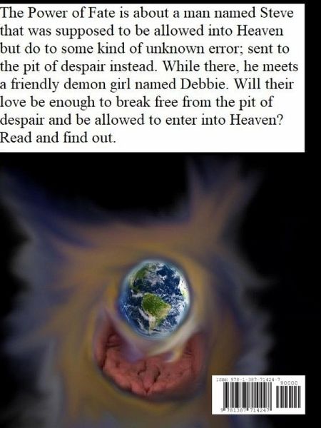 The Power Of Fate is about a man named Steve that was supposed to go to Heaven but do to some kind of unknown error; sent to the pit of despair instead. While there, he meets a friendly demon girl named Debbie. Will their love be enough to break free from the pit of despair and be allowed into Heaven? Read this book and find out!