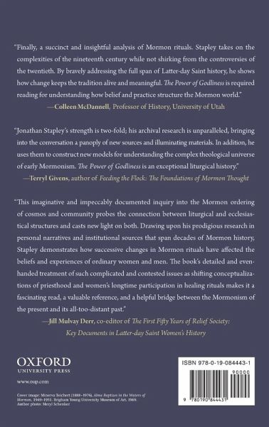 The Power of Godliness is a key work to understand Mormon conceptions of priesthood, authority, and gender. With in-depth research and never previously used documents, Jonathan A. Stapley explores the rituals of ordination, temple "sealings," baby blessings, healing, and cunning-folk traditions. In doing so, he demonstrates that Mormon liturgy includes a much larger and more complex set of ritualized acts of worship than the specific rites of initiation, instruction, and sealing that take place within the temple walls. By exploring Mormonism's liturgy more broadly, The Power of Godliness shows both the nuances of Mormon belief and practice, and how the Mormon ordering of heaven and earth is not a mere philosophical or theological exercise. Stapley examines Mormonism's liturgical history to reveal a complete religious world, incorporating women, men, and children all participating in the construction of the Mormon universe. This book opens new possibilities for understanding the lived experiences of women and men in the Mormon past and present, and investigates what work these rituals and ritualized acts actually performed in the communities that carried them out. By tracing the development of the rituals and the work they accomplish, The Power of Godliness sheds important new light on the Mormon universe, its complex priesthoods, authorities, and powers.