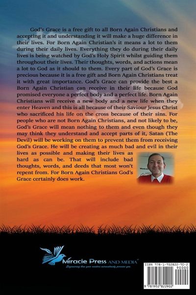 God's Grace is a free gift to all Born Again Christians and accepting it and understanding it will make a huge difference in their lives. For Born Again Christian's it means a lot to them during their daily lives. Everything they do during their daily lives is being watched by God's Holy Spirit whilst guiding them throughout their lives. Their thoughts, words and actions mean a lot to God as it should to them. Every part of God's Grace is precious because it is a free gift and Born Again Christians treat it with great importance. God's Grace can provide the best a Born Again Christian can receive in their life because God promised everyone a perfect body and a perfect life. Born Again Christians will receive a new body and a new life when they enter Heaven and this is all because of their Saviour Jesus Christ who sacrificed his life on the cross because of their sins. For people who are not Born Again Christians, and not likely to be, God's Grace will mean nothing to them and even though they may think they understand and accept parts of it, Satan (The Devil) will be working on them to prevent them from receiving God's Grace. He will be creating as much bad and evil in their lives as possible and making their lives as hard as can be. That will include bad thoughts, words and deeds which most won't repent from. The author has a very strong faith and understands and accepts God's Grace all the time. The author knows he has sinned during his life and asks for forgiveness plus repents from his sins every day and wants God's Grace to be with him, through the guidance of God's Holy Spirit, for the rest of his earthly life. The author's friendship with God is very strong and will hopefully be a big help to others. God's Grace is not only a free gift but it does include a wide range of things that only Born Again Christians will know and be thinking of and feeling due to the fact they know God is with them all the time and is involved in their life continuously. God's Grace certainly does work.