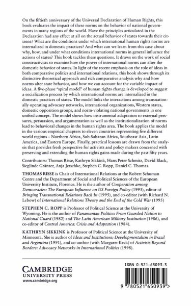This book celebrated the 50th anniversary of the Universal Declaration of Human Rights by showing how global human rights norms have influenced national government practices in eleven different countries around the world. Had the principles articulated in the Declaration had any effect on the behavior of states towards their citizens? What are the conditions under which international human rights norms are internalized in domestic practices? And what can we learn from this case about why, how, and under what conditions international norms in general influence the actions of states? This book draws on the work of social constructivists to examine these important issues. The contributors examine eleven countries representing five different world regions - Northern Africa, Sub-Saharan Africa, Southeast Asia, Latin America, and Eastern Europe - drawing practical lessons for activists and policy makers concerned with preserving and extending the human rights gains made during the past fifty years.