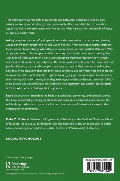 Asking questions such as: Why do people resist the temptation to cheat when cheating would benefit them greatly and no one would find out? Why do people express different beliefs about climate change when they are first reminded of their political affiliation? Why do people prefer to be compensated for donating blood with cholesterol screening than with money? Miller puts forth a novel and compelling argument regarding how strongly our identity claims affect our daily lives. The book provides explanations for many forms of puzzling behavior, such as why people sometimes act against their economic self-interest, how they avoid situations that test their moral identities, and how they respond to failures to live up to their moral identities. It paints an intriguing picture of people's investment in their identity claims by showing how they seek opportunities to demonstrate their validity, avoid actions and circumstances that challenge their legitimacy, and employ psychological defenses when others challenge their legitimacy.