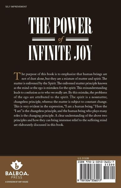 The purpose of this book is to emphasize that human beings are not of dust alone, but they are a mixture of matter and spirit. The matter is enlivened by the Spirit. The enlivened matter principle known as the mind or the ego is mistaken for the spirit. This misunderstanding leads to confusion as to who we really are. By this mistake, the problems of the ego are attributed to the spirit. The spirit is a nonmatter, changeless principle, whereas the matter is subject to constant change. This is very evident in the expression, "I am a human being." Here the "I am" is the changeless principle, and the human being who plays many roles is the changing principle. A clear understanding of the above two principles and how they can bring immense relief to the suffering mind are elaborately discussed in this book.