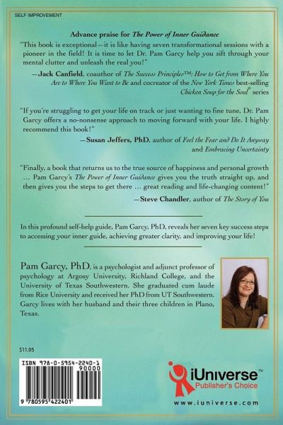 Advance praise for The Power of Inner Guidance "This book is exceptional-it is like having seven transformational sessions with a pioneer in the field! It is time to let Dr. Pam Garcy help you sift through your mental clutter and unleash the real you!" -Jack Canfield, coauthor of The Success Principles?: How to Get from Where You Are to Where You Want to Be and co-creator of the New York Times best-selling Chicken Soup for the Soul® series. "If you're struggling to get your life on track or just wanting to fine tune, Dr. Pam Garcy offers a no-nonsense approach to moving forward with your life. I highly recommend this book!" -Susan Jeffers, PhD, author of Feel the Fear and Do It Anyway and Embracing Uncertainty "Finally, a book that returns us to the true source of happiness and personal growth Pam Garcy's The Power of Inner Guidance gives you the truth straight up, and then gives you the steps to get there great reading and life-changing content!" -Steve Chandler, author of The Story of You In this profound self-help guide, Pam Garcy, PhD, reveals her seven key success steps to accessing your inner guide and improving your life!