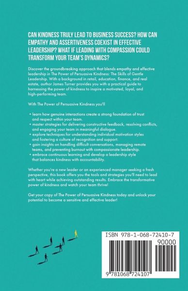 Can kindness truly lead to business success? How can empathy and assertiveness coexist in effective leadership? What if leading with compassion could transform your team's dynamics? Discover the groundbreaking approach that blends empathy and effective leadership in The Power of Persuasive Kindness: The Skills of Gentle Leadership. With a background in retail, education, finance, and real estate, author James Turner provides a practical guide to harnessing the power of kindness to inspire a motivated, loyal, and high-performing team. With The Power of Persuasive Kindness, you'll:learn how genuine interactions create a strong foundation of trust and respect within your team. master strategies for delivering constructive feedback, resolving conflicts, and engaging your team in meaningful dialogue. explore techniques for understanding individual motivation styles and fostering a culture of recognition and support. gain insights on handling difficult conversations, managing remote teams, and preventing burnout with compassionate leadership. embrace continuous learning and develop a leadership style that balances kindness with accountability. Whether you're a new leader or an experienced manager seeking a fresh perspective, this book offers the tools and strategies you'll need to lead with heart while achieving outstanding results. Embrace the transformative power of kindness and watch your team thrive! Get your copy of The Power of Persuasive Kindness today and unlock your potential to become a sensitive and effective leader!