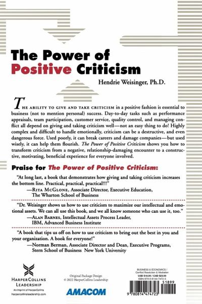 Discover why criticism is essential to many aspects of business, such as performance appraisals, quality control, and team functioning, to name a few. Some people just can't take criticism while others just can't give it--not in a positive, motivating, mutually beneficial manner, anyway. Using real-life scenarios and the author's 21 tips to positive criticism, you will learn to: Think of criticism as a positive thing Become strategic criticizers and develop their skill in using the power of positive criticism Stay cool, calm, and collected when giving or getting criticism Criticize their boss--without getting fired, and more The Power of Positive Criticism helps you take the sting out of criticism--and transform it from a destructive, demoralizing disaster into an energizing, educating experience that builds relationships and increases individual and organizational success.