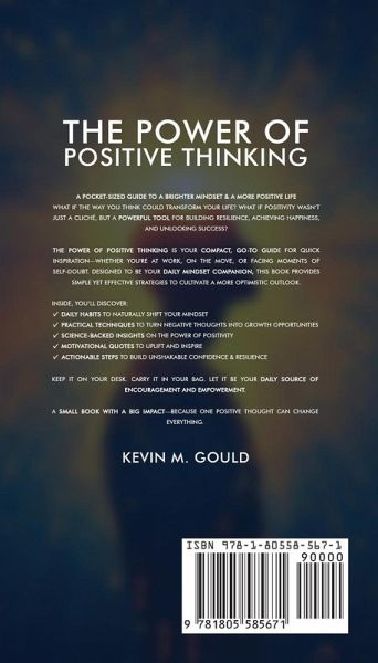 A pocket-sized guide to a brighter mindset & a more positive life what if the way you think could transform your life? what if positivity wasn't just a cliché, but a powerful tool for building resilience, achieving happiness, and unlocking success? the power of positive thinking is your compact, go-to guide for quick inspiration whether you're at work, on the move, or facing moments of self-doubt. designed to be your daily mindset companion, this book provides simple yet effective strategies to cultivate a more optimistic outlook. inside, you'll discover: * daily habits to naturally shift your mindset * practical techniques to turn negative thoughts into growth opportunities * science-backed insights on the power of positivity * motivational quotes to uplift and inspire * actionable steps to build unshakable confidence & resilience keep it on your desk, carry it in your bag, let it be your daily source of encouragement and empowerment. a small book with a big impact-because one positive thought can change everything.