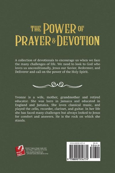 Yvonne is a wife, mother, grandmother and retired educator. She was born in Jamaica and educated in England and Jamaica. She loves classical music, and plays the cello, recorder, clarinet and guitar. In her life, she has faced many challenges but always looked to Jesus for comfort and answers. He is the rock on which she stands.