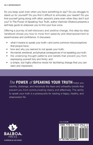 Do you keep quiet even when you have something to say? Do you struggle to stand up for yourself? Do you find it difficult to articulate your needs? Do you find yourself going along with other people's plans even when they don't suit you? In The Power of Speaking Your Truth, author Harinder Ghatora presents a self-help guide to empower you to find your true voice. Offering a journey of self-discovery and positive change, this step-by-step handbook shows you how to move from passivity and disempowerment to assertiveness and confidence. It discusses: ¿ what it means to speak your truth-and some common misconceptions that people have; ¿ how and why you learned to not speak your truth; ¿ the mental, emotional, and physical consequences of not speaking your truth; ¿ the underlying thought patterns and beliefs that prevent you from expressing yourself fully and firmly; and ¿ a simple, but highly effective model for facilitating change that you can learn and implement. The POWER of SPEAKING YOUR TRUTH helps you identify, challenge, and transmute the fears and unhealthy beliefs that prevent you from communicating clearly and effectively. The ability to speak your truth is a prerequisite for leading a happy, healthy, and empowered life.