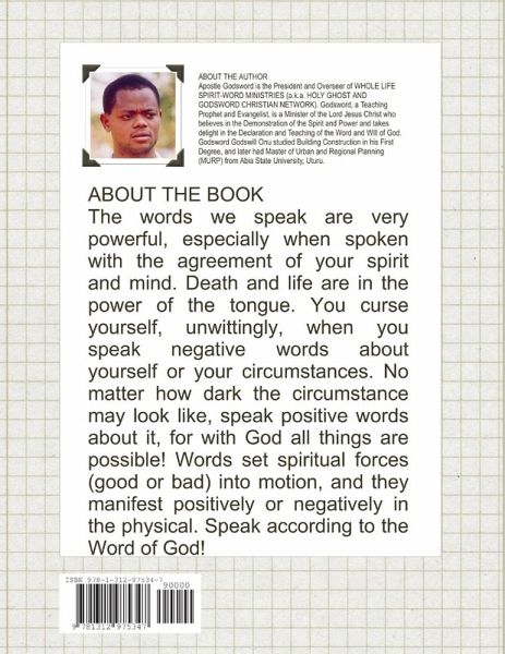 The words we speak are very powerful, especially when spoken with the agreement of your spirit and mind. Death and life are in the power of the tongue. You curse yourself, unwittingly, when you speak negative words about yourself or your circumstances. No matter how dark the circumstance may look like, speak positive words about it, for with God all things are possible! Words set spiritual forces (good or bad) into motion, and they manifest positively or negatively in the physical. Speak according to the Word of God!