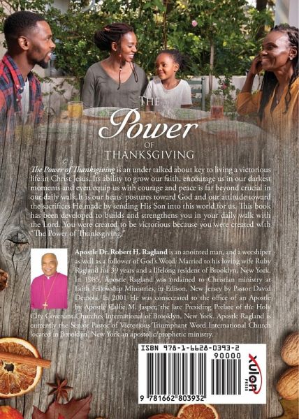 The Power of Thanksgiving is an under talked about key to living a victorious life in Christ Jesus. Its ability to grow our faith, encourage us in our darkest moments and even equip us with courage and peace is far beyond crucial in our daily walk.It is our heats' postures toward God and our attitude toward the sacrifices He made by sending His Son into this world for us. This book has been developed to builds and strengthens you in your daily walk with the Lord. You were created to be victorious because you were created with "The Power of Thanksgiving." Apostle Dr. Robert H. Ragland is an anointed man, and a worshiper as well as a follower of God's Word. Married to his loving wife Ruby Ragland for 39 years and a lifelong resident of Brooklyn, New York. In 1985, Apostle Ragland was ordained to Christian ministry at Faith Fellowship Ministries, in Edison, New Jersey by Pastor David Demola. In 2001 He was consecrated to the office of an Apostle by Apostle Callie M. Jasper, the late Presiding Prelate of the Holy City Covenant Churches International of Brooklyn, New York. Apostle Ragland is currently the Senior Pastor of Victorious Triumphant Word International Church located in Brooklyn, New York an apostolic/prophetic ministry.