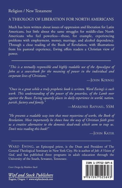 A THEOLOGY OF LIBERATION FOR NORTH AMERICANS Much has been written about issues of oppression and liberation for Latin Americans, but little about the same struggles for middle-class North Americans who feel powerless-those, for example, experiencing problems with employment, money, marriage, and alcohol dependency. Through a close reading of the Book of Revelation, with illustrations from his pastoral experience, Ewing offers readers a Christian view of power.