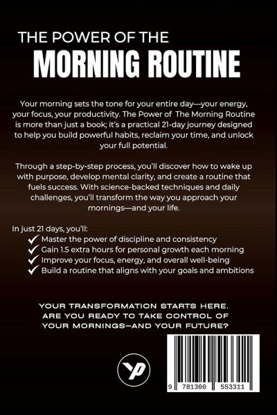 The Power of Morning Routine is a practical 21-day guide designed to help you transform your mornings and, ultimately, your life. Through powerful habits, structured exercises, and proven techniques, this book will show you how to gain more time, increase your focus, and boost your energy each day. Whether you want to improve productivity, develop mental clarity, or create a healthier lifestyle, The Power of Morning Routine gives you the tools to build a personalized routine that works for you. Start your mornings with purpose, and watch how it transforms everything else.