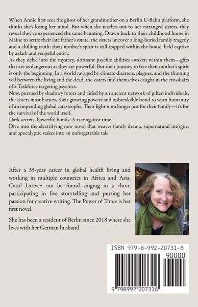 When Annie first sees the ghost of her grandmother on a Berlin U-Bahn platform, she thinks she's losing her mind. But when she reaches out to her estranged sisters, they reveal they've experienced the same haunting. Drawn back to their childhood home in Maine to settle their late father's estate, the sisters uncover a long-buried family tragedy and a chilling truth: their mother's spirit is still trapped within the house, held captive by a dark and vengeful entity. As they delve into the mystery, dormant psychic abilities awaken within them-gifts that are as dangerous as they are powerful. But their journey to free their mother's spirit is only the beginning. In a world ravaged by climate disasters, plagues, and the thinning veil between the living and the dead, the sisters find themselves caught in the crosshairs of a Taskforce targeting psychics. Now, pursued by shadowy forces and aided by an ancient network of gifted individuals, the sisters must harness their growing powers and unbreakable bond to warn humanity of an impending global catastrophe. Their fight is no longer just for their family-it's for the survival of the world itself. Kirkus Review: A vivid, engrossing portrait of a family amid the turmoil of death and revelations.