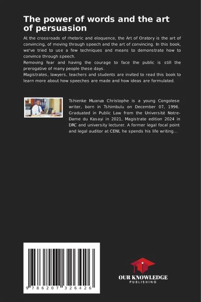 At the crossroads of rhetoric and eloquence, the Art of Oratory is the art of convincing, of moving through speech and the art of convincing. In this book, we've tried to use a few techniques and means to demonstrate how to convince through speech.Removing fear and having the courage to face the public is still the prerogative of many people these days.Magistrates, lawyers, teachers and students are invited to read this book to learn more about how speeches are made and how ideas are formulated.