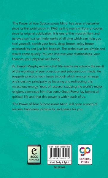 The Power of Your Subconscious Mind' has been a bestseller since its first publication in 1963, selling many millions of copies since its original publication. It is one of the most brilliant and beloved spiritual self-help works of all time which can help you heal yourself, banish your fears, sleep better, enjoy better relationships and just feel happier. The techniques are simple and results come quickly. You can improve your relationships, your finances, your physical well-being. Dr Joseph Murphy explains that life events are actually the result of the workings of your conscious and subconscious minds. He suggests practical techniques through which one can change one's destiny, principally by focusing and redirecting this miraculous energy. Years of research studying the world's major religions convinced him that some Great Power lay behind all spiritual life and that this power is within each of us. 'The Power of Your Subconscious Mind' will open a world of success, happiness, prosperity, and peace for you. ABOUT THE AUTHOR: Joseph Murphy was born in Ireland, the son of a private boy's school headmaster and raised a Roman Catholic. He studied for the priesthood and joined the Jesuits. In his twenties, an experience with healing prayer led him to leave the Jesuits and move to the United States, where he became a pharmacist in New York (having a degree in chemistry by that time). Here he attended the Church of the Healing Christ (part of the Church of Divine Science), where Emmet Fox had become minister in 1931. In the mid 1940s, he moved to Los Angeles, where he met Religious Science founder Ernest Holmes, and was ordained into Religious Science by Holmes in 1946, thereafter teaching at the Institute of Religious Science. A meeting with Divine Science Association president Erwin Gregg led to him being reordained into Divine Science, and he became the minister of the Los Angeles Divine Science Church in 1949, which he built into one of the largest New Thought congregations in the country. In the next decade, Murphy married, earned a PhD in psychology from the University of Southern California and started writing. After his first wife died in 1976, he remarried to a fellow Divine Science minister who was his longstanding secretary. He died in 1981.