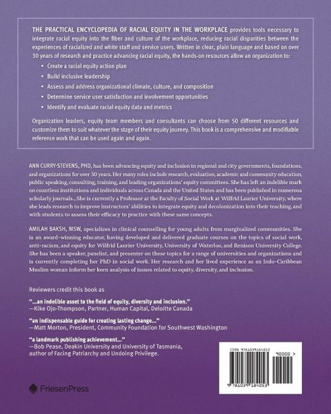 The Practical Encyclopedia of Racial Equity in the Workplace provides tools necessary to integrate racial equity into the fiber and culture of the workplace, reducing racial disparities between the experiences of racialized and white staff and service users. Written in clear, plain language and based on over 30 years of research and practice advancing racial equity, the hands on resources allow an organization to: - Create a racial equity action plan - Build inclusive leadership - Assess and address organizational climate, culture, and composition - Determine service user satisfaction and…mehr
