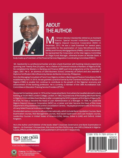 This book seeks to enlighten the general public and other stakeholders about the activities of Regulators (CBN/NDIC) in ensuring that financial institutions operate in a safe and sound manner; through effective regulation and supervision. In addition, that the regulators provide technical and financial support to banks that are distressed and that bank liquidation is the last option on the cards of regulators in resolving bank failure. Leveraging on his years of experience in NDIC, the author, highlights the framework for bank liquidation in Nigeria in terms of the stakeholders as well as the relevant provisions of enabling laws. The book also enumerates the reasons for bank failures in Nigeria along with distress and failure resolution options available to failing and failed banks.