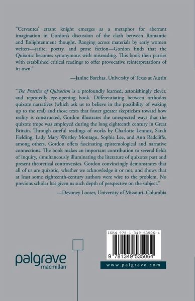 "The Practice of Quixotism is a profoundly learned, astonishingly clever, and repeatedly eye- opening book.Differentiating between orthodox quixote narratives (which ask us to believe in the possibility of waking up to the real) and those texts that foster greater skepticism toward how reality is constructed, Gordon illustrates the unexpected ways that the quixote trope was employed during the long eighteenth century in Great Britain. Through careful readings of works by Charlotte Lennox, Sarah Fielding, Lady Mary Wortley Montagu, Sophia Lee, and Ann Radcliffe, among others, Gordon offers fascinating epistemological and narrative connections.The book makes an important contribution to several fields of inquiry, simultaneously illuminating the literature of quixotes past and present theoretical controversies.Gordon convincingly demonstrates that all of us are quixotic, whether we acknowledge it or not, and shows that at least some eighteenth-century authors were wise to the problem.No previous scholar has given us such depth of perspective on the subject." - Devoney Looser, University of Missouri-Columbia"The Practice of Quixotism reflects Gordon's skill as a widely rea hermeneut, and it is a remarkable work of intellectual history and literary criticsm. By viewing the transition from Enlightenment to Romantic thought through the lenses of the quixote trope and postmodern theory, Gordon forces a reconsideration of the feminist critical consensus on works by Lennox, Lee, Sarah Fielding, and others. Through complex and subtle readings of women's writing, Gordon offers a new way to understand British culture in the long eighteenth century." - Stephen A. Raynie, Gordon College
