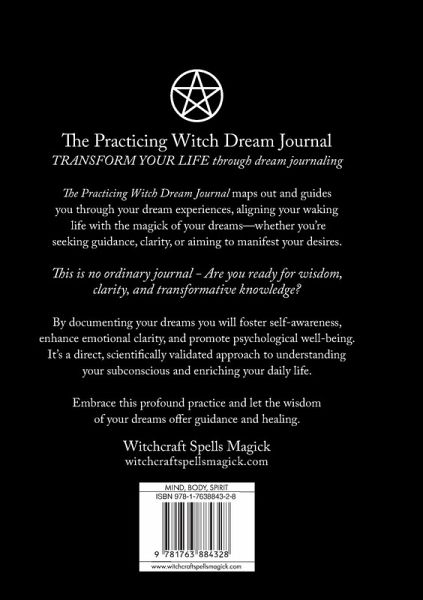 The Practicing Witch Dream Journal: Transform your life through dream journaling The Practicing Witch Dream Journal maps out and guides you through your dream experiences, aligning your waking life with the magick of your dreams-whether you're seeking guidance, clarity, or aiming to manifest your desires. This is no ordinary journal - Are you ready for wisdom, clarity, and transformative knowledge? By documenting your dreams you will foster self-awareness, enhance emotional clarity, and promote psychological well-being. It's a direct, scientifically validated approach to understanding your subconscious and enriching your daily life. Embrace this profound practice and let the wisdom of your dreams offer guidance and healing. Witchcraft Spells Magick witchcraftspellsmagick.com